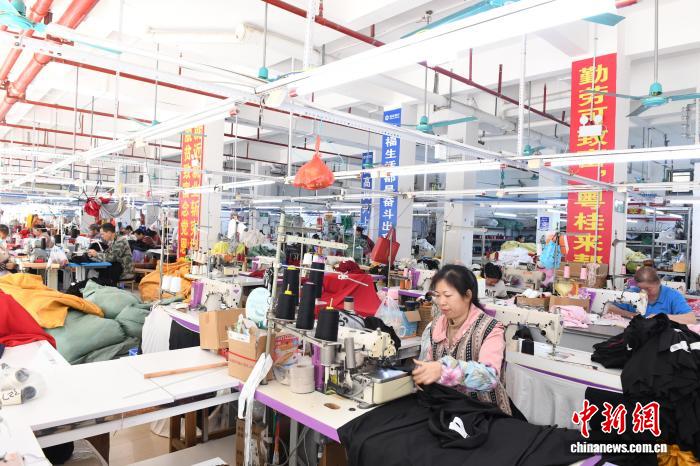 今日正在广西崇左市天等县龙岩社区,坐正在缝纫机前的壮族女士关丽勤一壁任务一壁对于记者道。